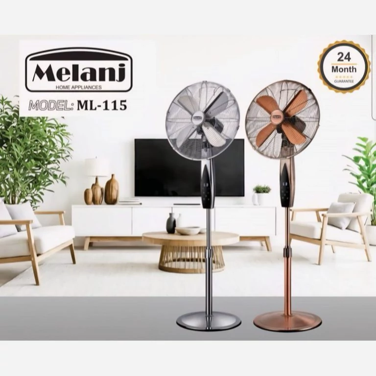 پنکه ایستاده فلزی ملانژ مدل ML-115 مناسب برای: خانه و محل کار ترکیبی از زیبایی همراه با خنکای بینظیر! طراحی مدرن و چشم نواز رنگ استیل و مسی 24 ماه گارانتی معتبر شرکتی
